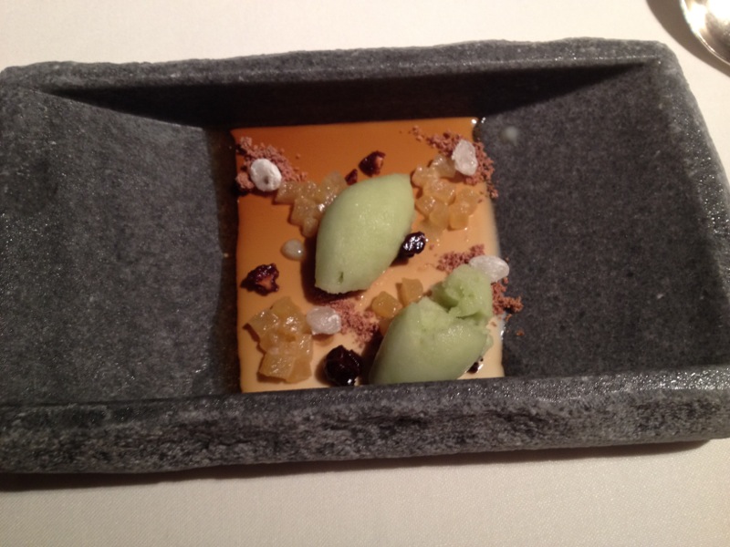 Como no vimos a ningún hermano Roca, se me antoja que pudieran estar de vacaciones o descubriendo otras gastronomías, como sugería el primer aperitivo, por lo que el responsable dejado al mando de la cocina pudiera no haber controlado suficientemente los puntos de sazón o de servicio que les han encumbrado, que, al final, es lo verdaderamente importante, y el de sala, connivente, hubiera relajado la autoexigencia… Aunque, efectivamente, esto resulta poco lógico: acabar pensando que en un sitio situado en lo más alto,  como éste,  a los que suponemos organizaciones casi perfectas y bien engrasadas, la falta del amo enflaquezca al caballo.