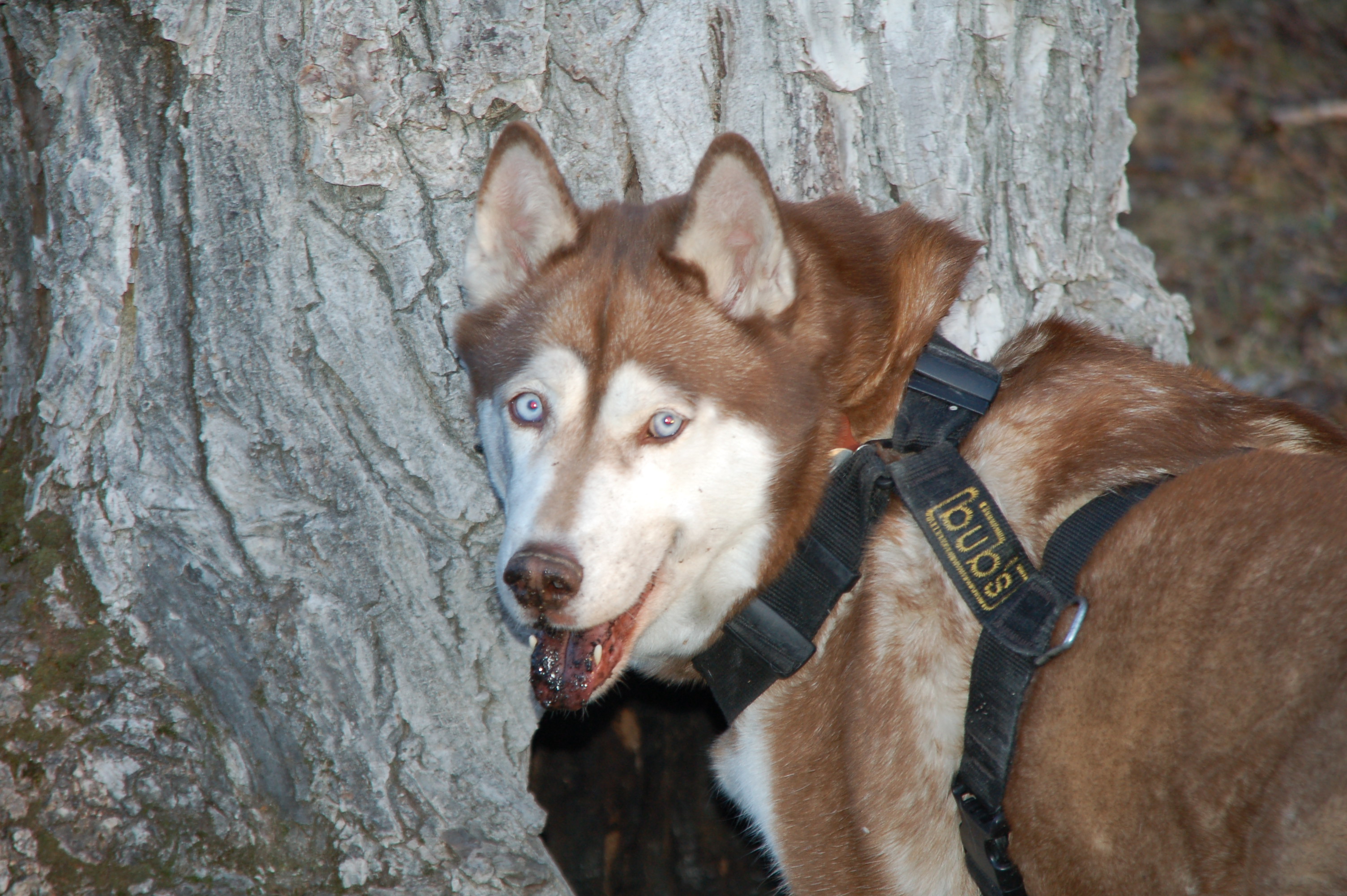 Pronto se dio cuenta, cuando estaba en la calle, de que, si se revolvía, lograba zafarse del collar y largarse libre, lo cual logró hacer en algunas ocasiones, la más sonada un día que la bajó a pasear Ana, mi mujer. Se le escapó nada más salir y se marchó corriendo, jugando a ser atrapada, cruzando varias calles grandes con gravísimo riesgo. Mi mujer no logró darla alcance, pero sí logró, corriendo, seguirla de lejos, según los transeúntes le indicaban por donde había pasado, hasta que en unos jardines, resultó que había una pareja joven con otro Husky, al que ella se había acercado, que lograron agarrarla cuando se percataron de que la dueña llegaba poco después a la carrera, exhausta y más que preocupada. Tras el susto tan monumental compramos un arnés y una correa extensible y, por fin, pudimos pasear con una cierta tranquilidad, aunque ya siempre avisados de lo que era capaz.