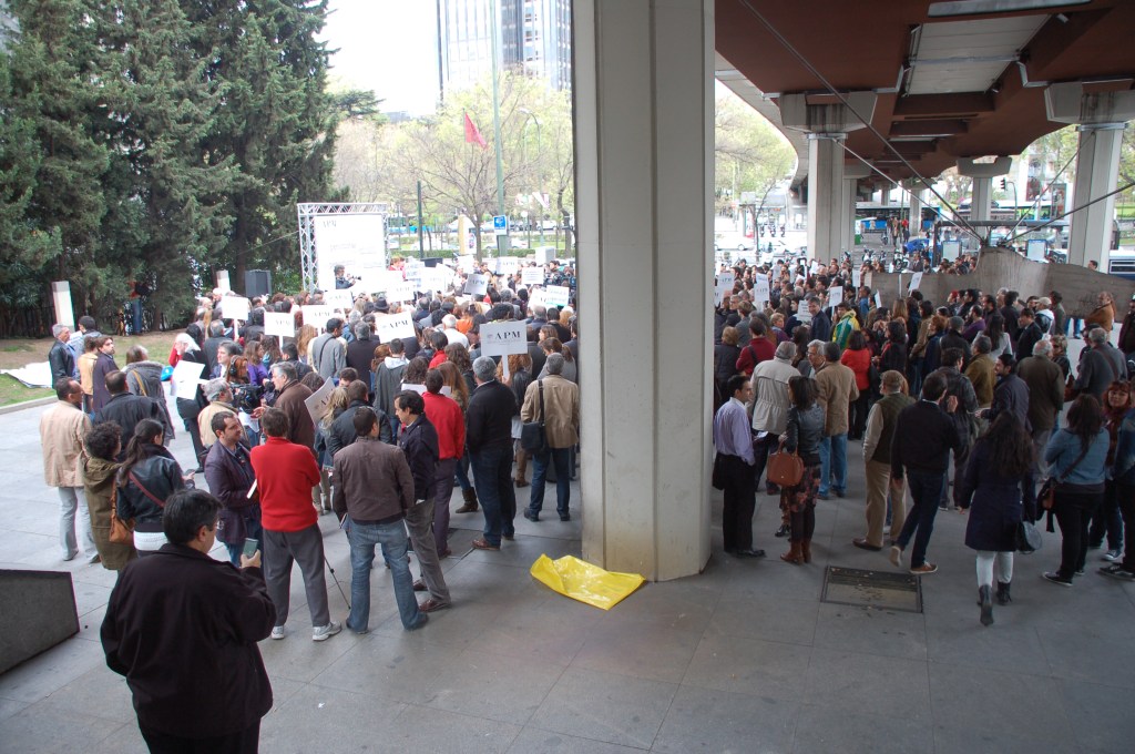 Bajo el puente que sobre la avenida de la Castellana, en Madrid, une la calle de Eduardo Dato con la de Juan Bravo, del que cuelga la sirena varada de Chillida, se han reunido, esta mañana a las doce, con un tiempo fresco, con las nubes tapando el sol y acumulando lluvia, unas 200 personas para reivindicar eso. La mayoría periodistas. Apenas los ciudadanos nos hemos sumado a esta convocatoria, como si no nos fuera algo en ello. Algunos muy conocidos, como Iñaqui Gabilondo, Anabel Díez, Joaquín Estefanía, o Miguel Ángel Aguilar, y otros muchos cuyas caras no reconocemos, pero ocupan las redacciones y sin su concurso la información no nos llegaría. También había jóvenes, algunos de los que se podía deducir su reciente salida de las facultades de periodismo, o la experiencia incipiente haciendo “canutazos”, porque hoy los periodistas consagrados eran la noticia, eran los entrevistados, fotografiados y filmados por sus colegas más jóvenes.