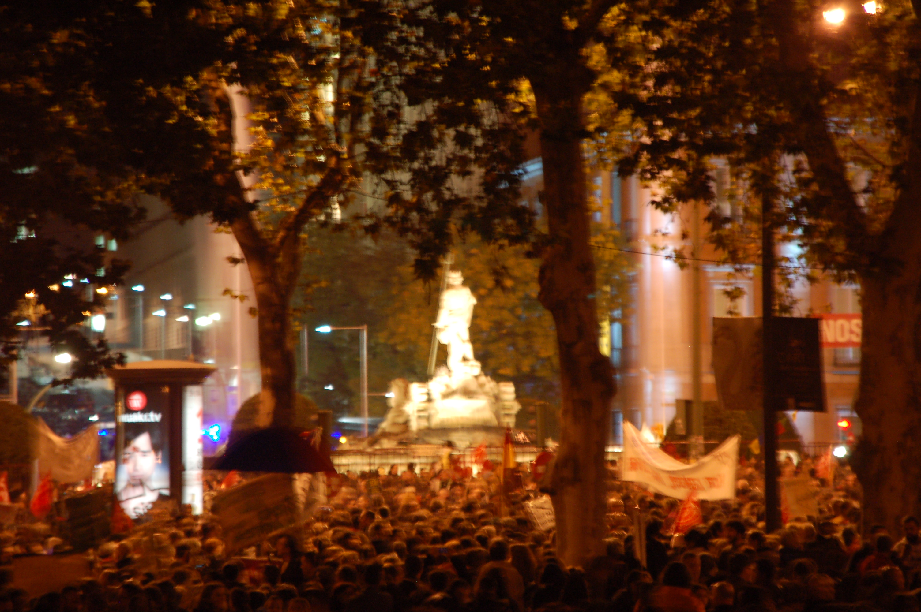La plaza de Cibeles, a las siete menos veinte, diez minutos después de la hora fijada para el comienzo de la marcha en Atocha, ya estaba llena mientras desde la puerta del Alcalá seguía incorporándose gente.